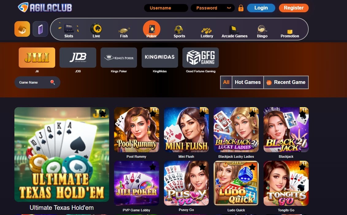 Poker is a game of skill, strategy, and luck, and at AGILACLUB, you’ll find a wide range of poker games designed for both beginners and experienced players. Whether you prefer Texas Hold’em, Omaha, or other variations, you can join exciting tables and tournaments to test your poker skills while having the chance to win big prizes.